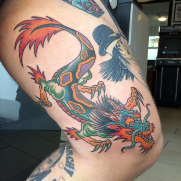 简单old school彩色滑稽龙纹身图案