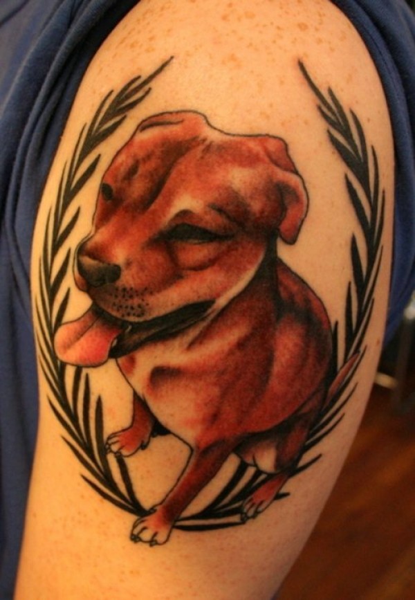 狗和树叶纹身图案