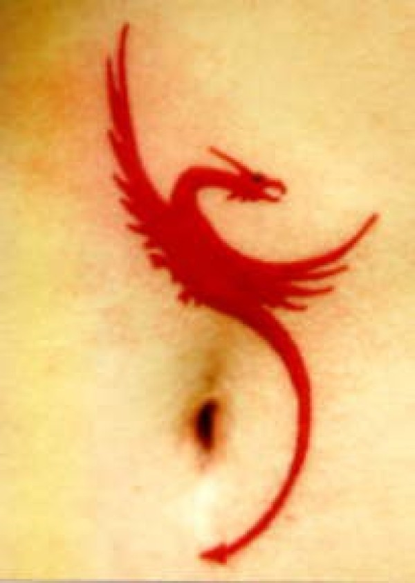 简约的红色飞龙纹身图案