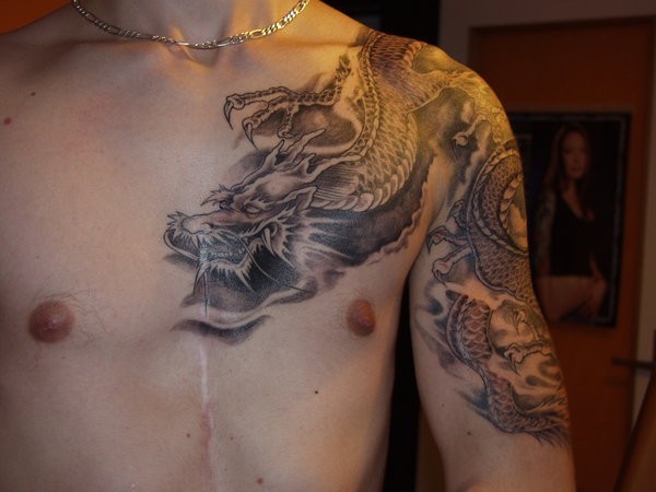 日式手彫刺青作品—半甲龙很感谢客户认可手彫刺青,手彫是日本纹身的手工雕刻技术,时间可以追溯到日本17世纪的江户时代。19世纪,手彫技术被日本黑帮挪用,被用作入会仪式,象征着从此就是江湖中人。在日式传统