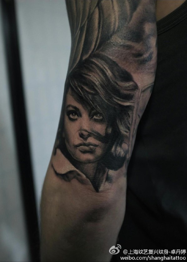女性肩部肖像刺青_肖像纹身图案大全_纹身图吧