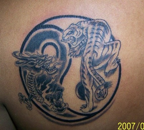 阴阳八卦老虎和龙纹身图案
