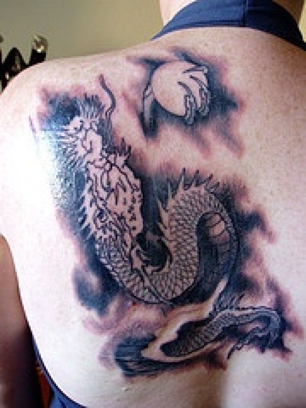 龙纹身手稿_一组老传统黑灰龙手稿纹身图案