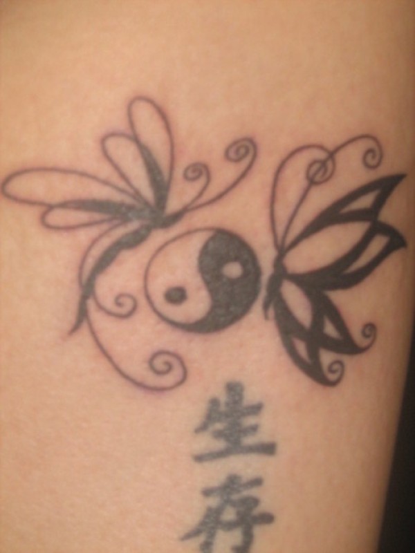 阴阳八卦和蜻蜓蝴蝶纹身图案