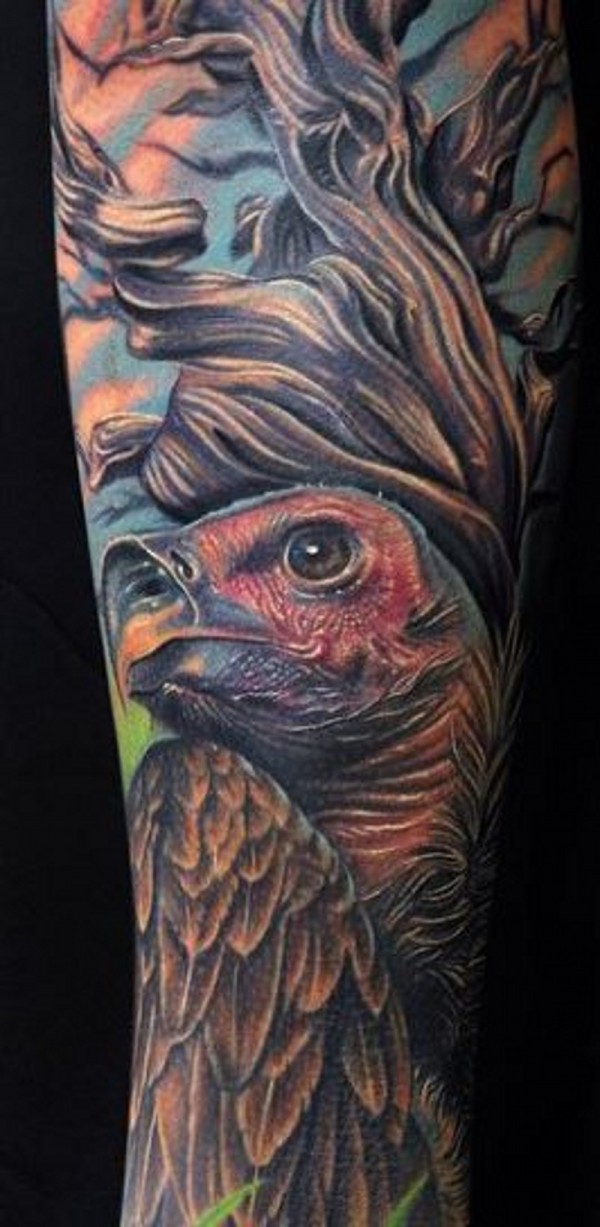 手臂细致的鹰彩色纹身图案