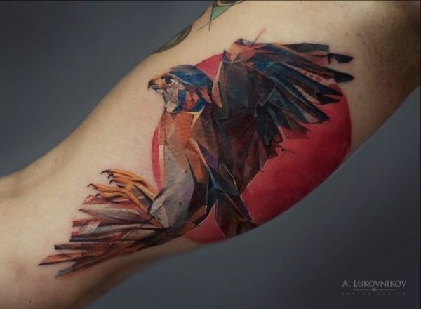 大臂内侧插画风格飞鹰纹身图案
