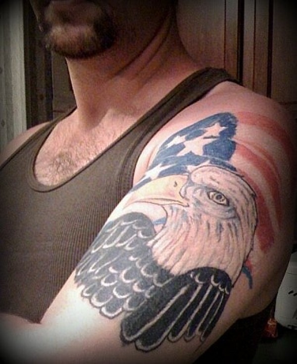 大臂美国国旗上的鹰纹身图案