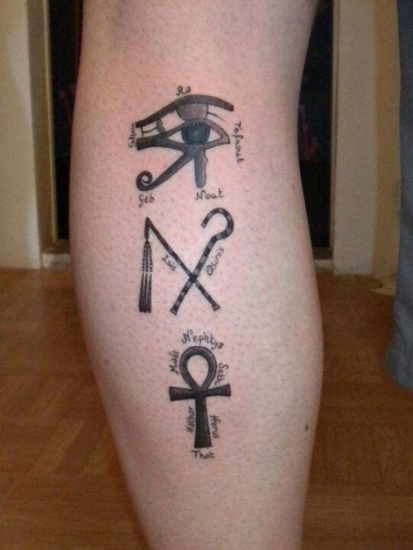 腿部埃及十字架荷鲁斯之眼符号纹身图案