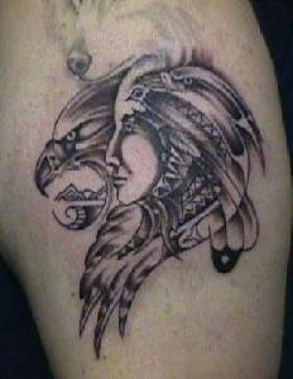 部落印度人像鹰纹身图案