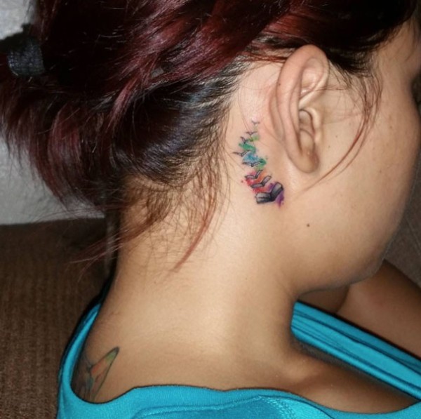 耳朵后苍白的彩色书籍微小纹身图案