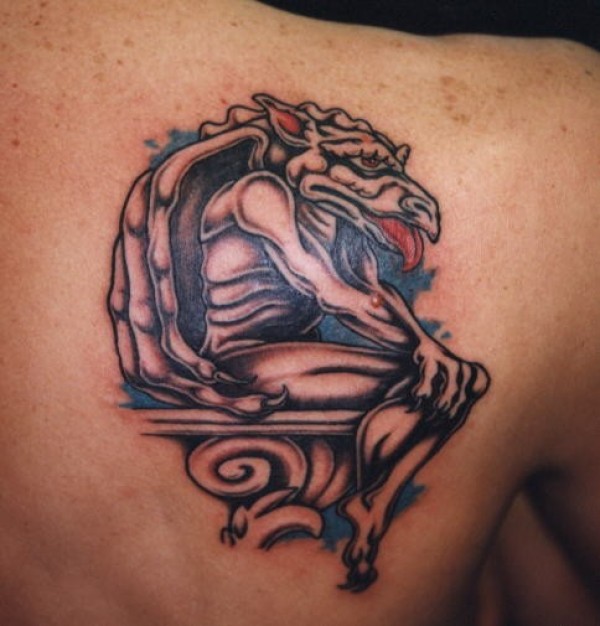 男人背部石像鬼纹身图案