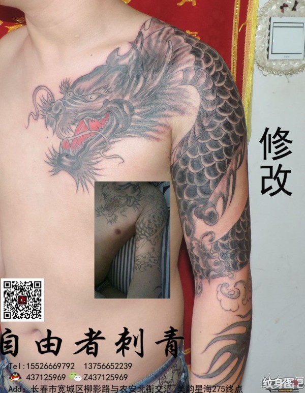 日式手彫刺青作品—半甲龙很感谢客户认可手彫刺青,手彫是日本纹身的手工雕刻技术,时间可以追溯到日本17世纪的江户时代。19世纪,手彫技术被日本黑帮挪用,被用作入会仪式,象征着从此就是江湖中人。在日式传统