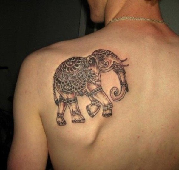 背部印度风格大象纹身图案