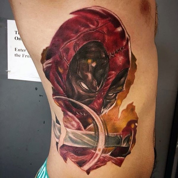 侧肋恐怖风格邪恶血腥死侍纹身图案