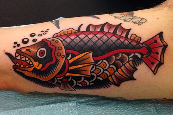 old school彩绘邪恶的鱼纹身图案