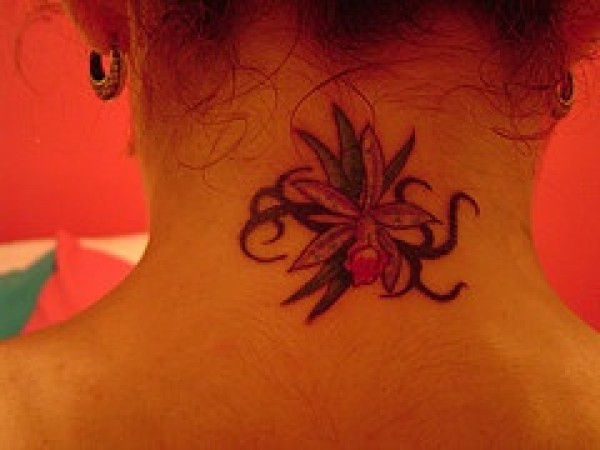 颈部请心情花卉纹身图案