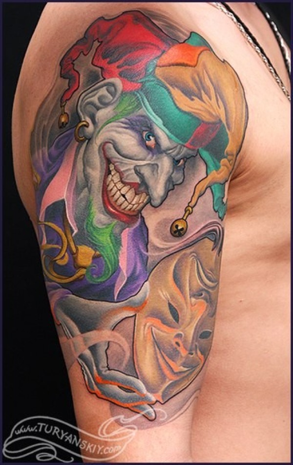 大臂邪恶的小丑面具纹身图案
