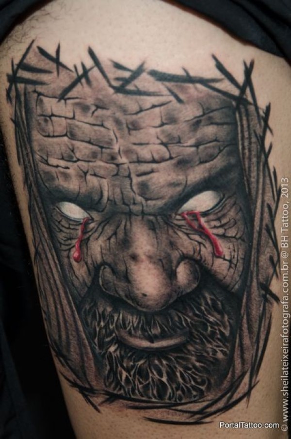恐怖风格有胡子的邪恶男子纹身图案