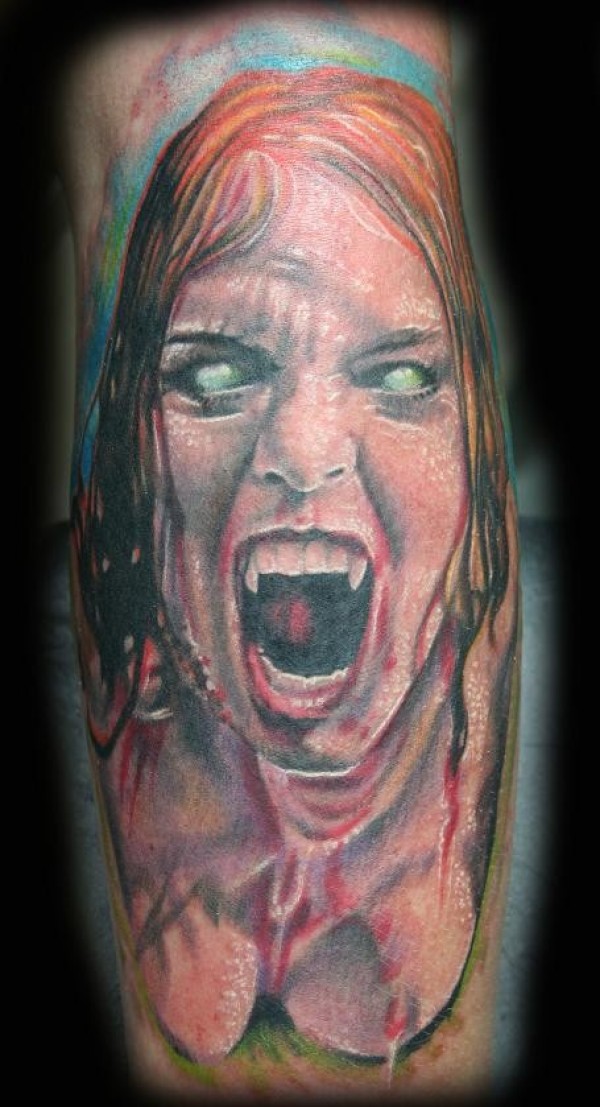 恐怖电影彩色血腥吸血鬼女人纹身图案