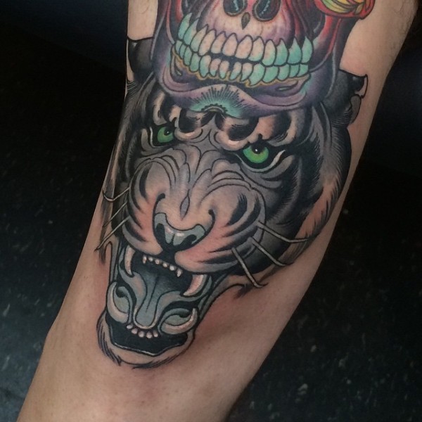 new school彩色邪恶的老虎纹身图案