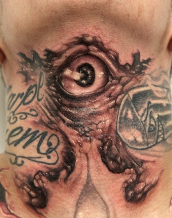 男子颈部邪恶之眼纹身图案