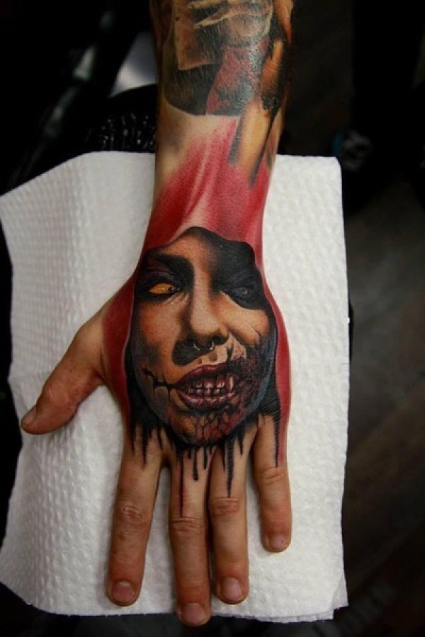 手背彩色邪恶血腥吸血鬼纹身图案
