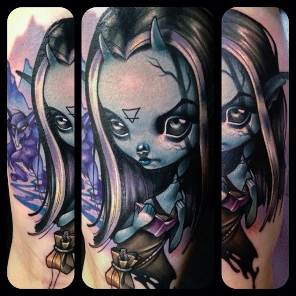 现代风格的彩色邪恶女孩纹身图案