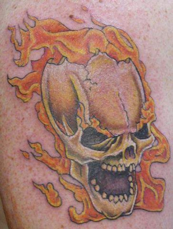 邪恶骷髅和火焰纹身图案