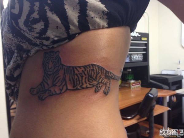 腰侧面的割线老虎纹身
