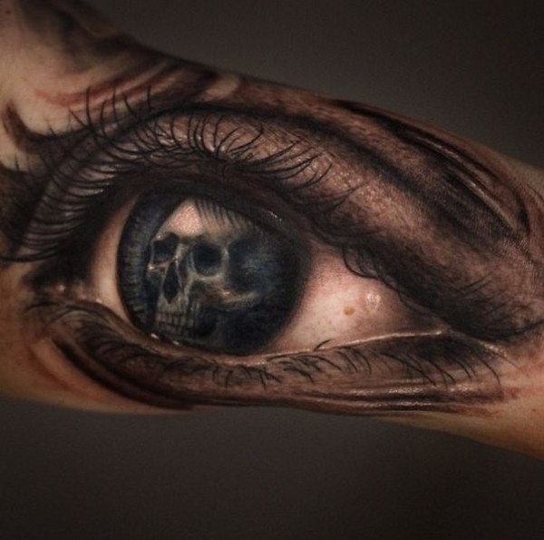 精确绘制彩色女人眼睛和骷髅纹身图案