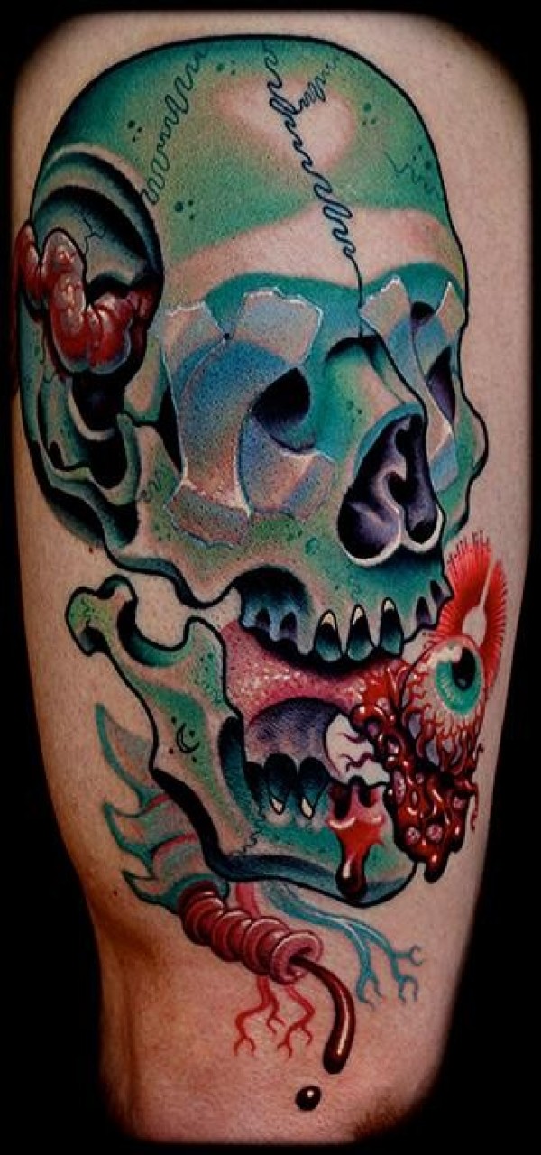 彩色令人毛骨悚然的骷髅与眼球纹身图案