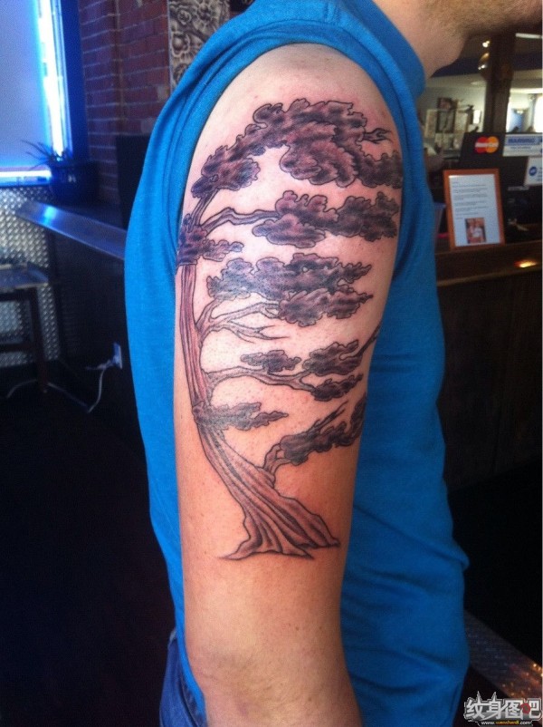 大臂上的柏树纹身