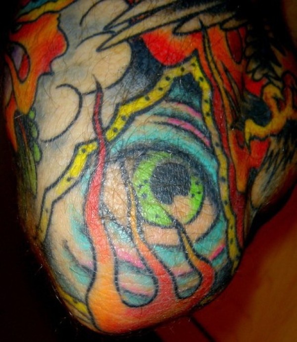 school眼睛三角形和火焰纹身图案