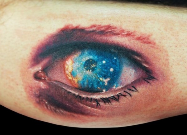 不可思议的眼球内水与火纹身图案