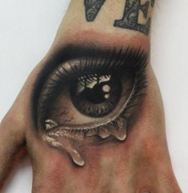 手背写实流泪眼睛纹身图案