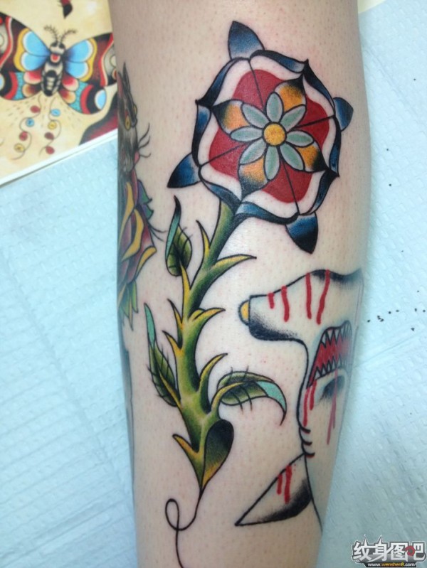 清新花朵腿部纹身图案图片_植物纹身图案大全_纹身图吧