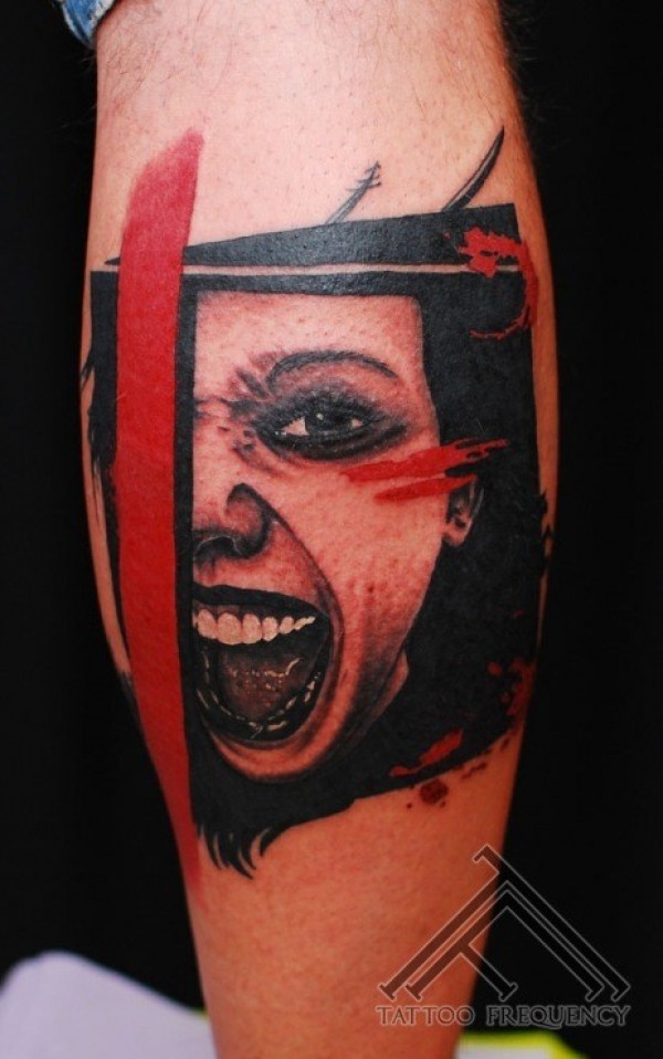 令人毛骨悚然的彩色尖叫女人脸纹身图案