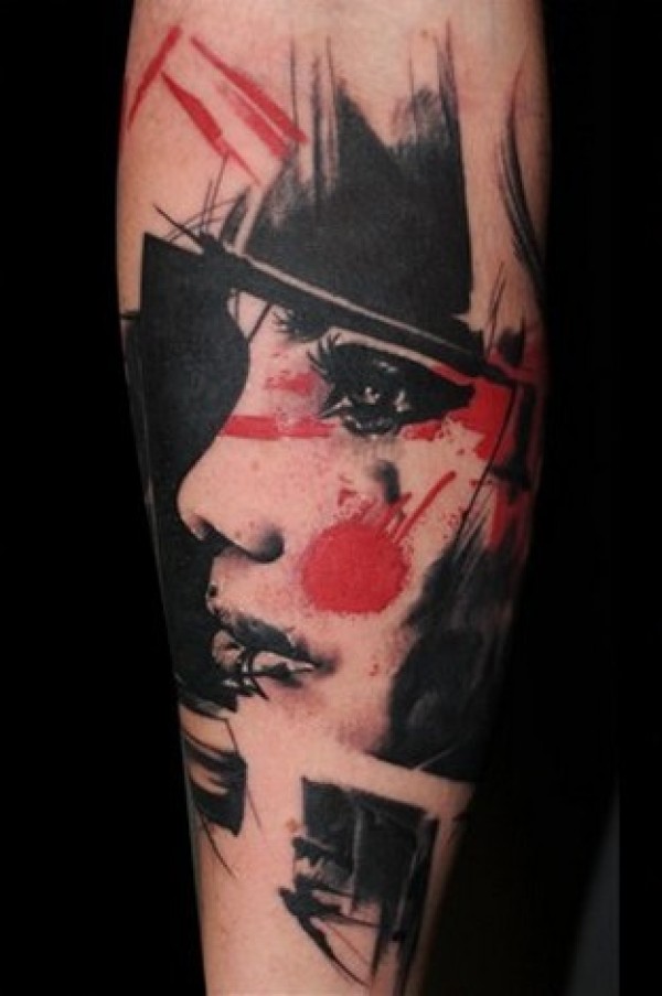 手臂彩色女性侧脸肖像纹身图案