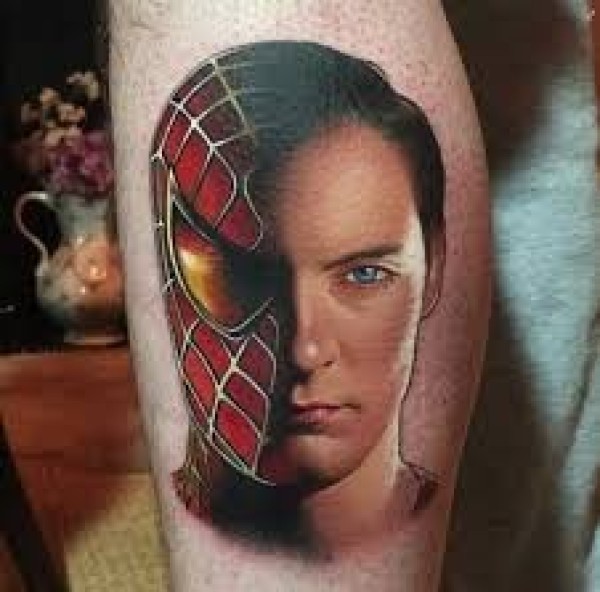 小腿蜘蛛侠带面具纹身图案