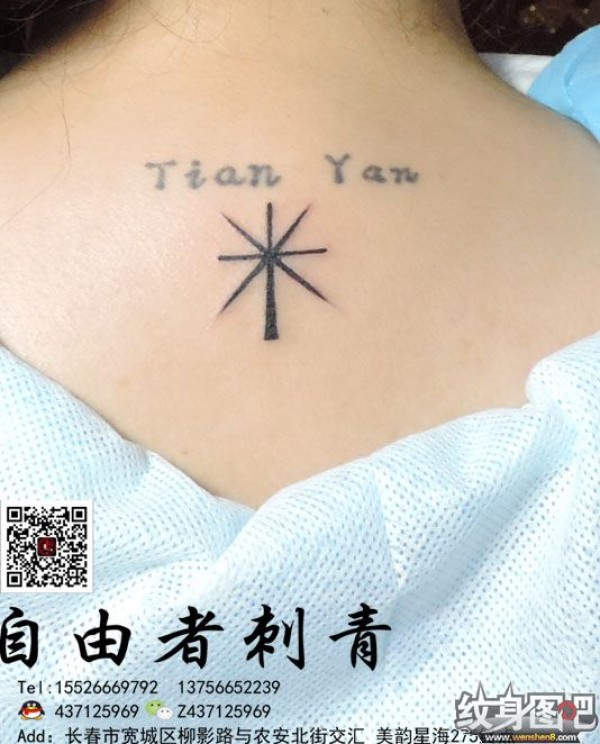 后颈部纹身小图--9张女生脖子后颈处的简约纹身图案