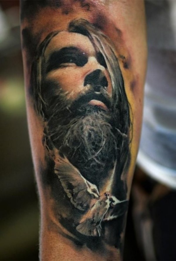 手臂彩色男子胡须脸肖像纹身图案
