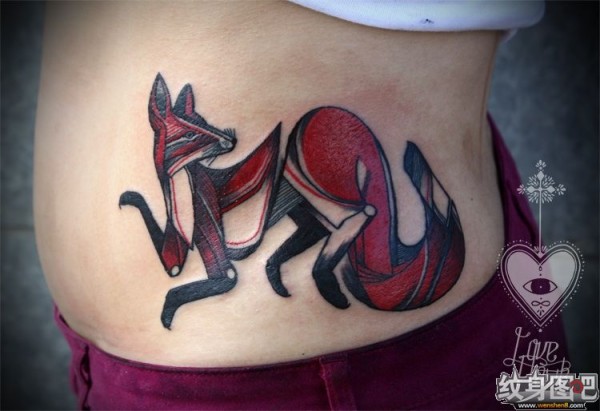 分享一款腰部时尚性感的蝶恋花纹身图案_腰部纹身图案大全_纹身图吧