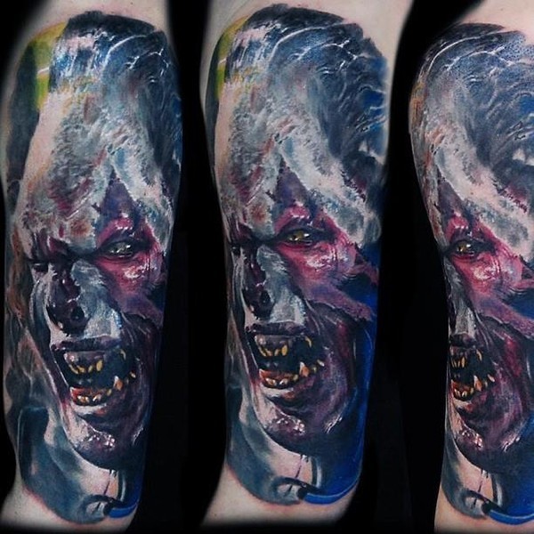 彩色兽人可怕肖像纹身图案