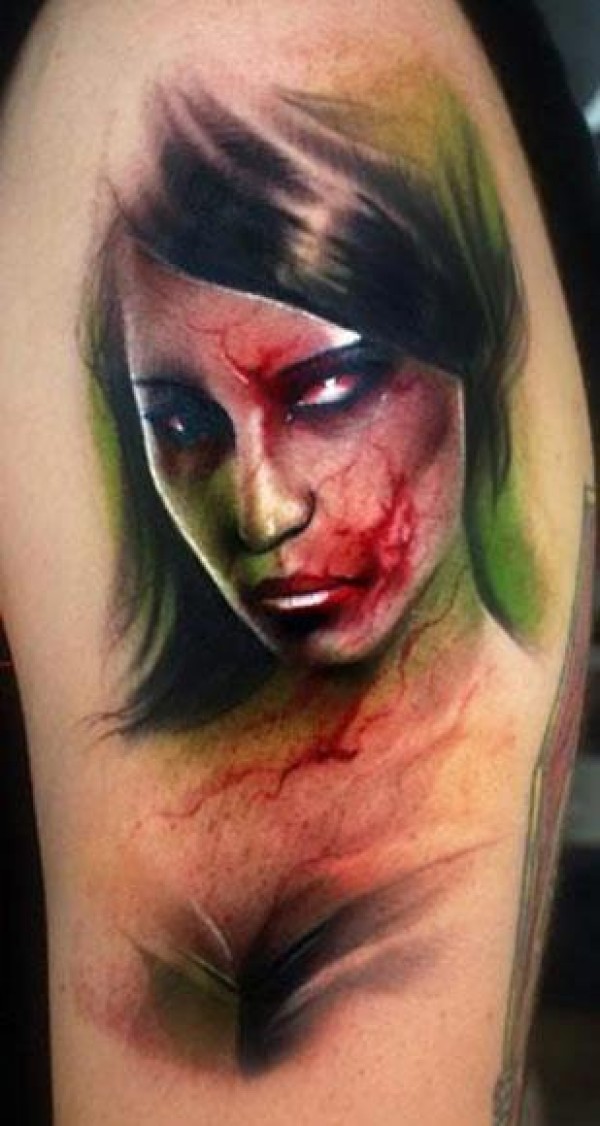 怪物女人脸彩色纹身图案