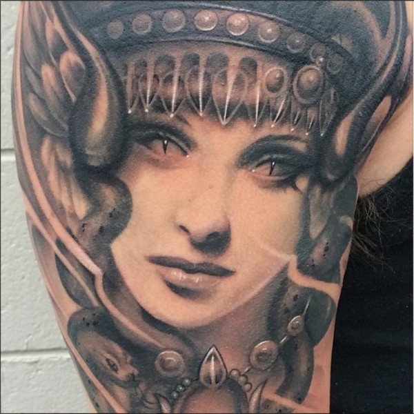 彩色奇特的恶魔女人脸纹身图案