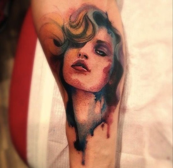 水彩风格彩色诱惑女人肖像纹身图案