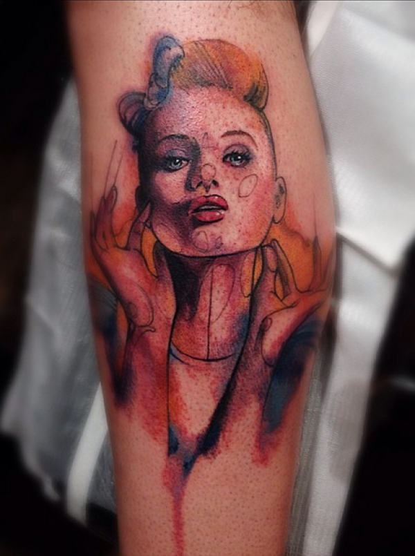 素描式彩色女子脸纹身图案