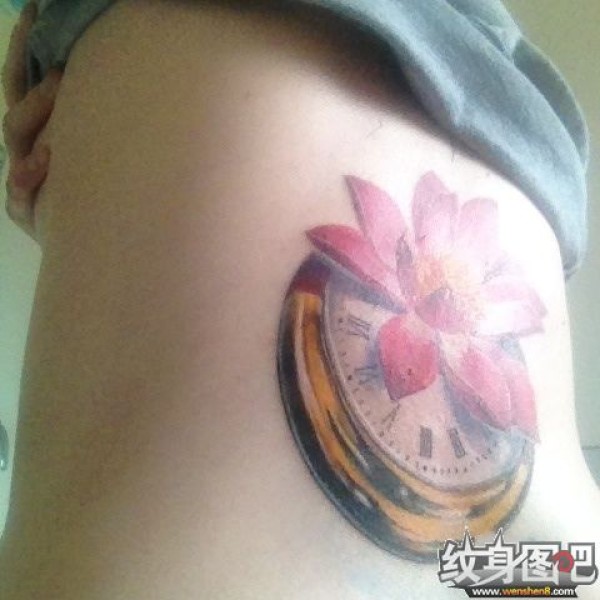 女性腰部莲花花纹刺青_腰部纹身图案大全_纹身图吧