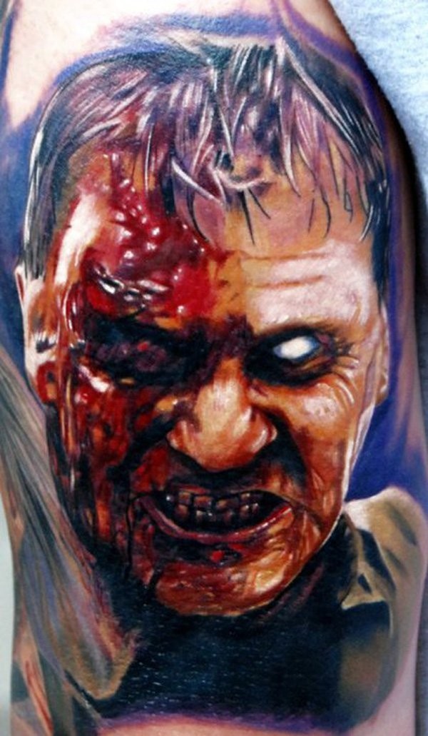 惊人的彩色恐怖风格的僵尸肖像纹身图案