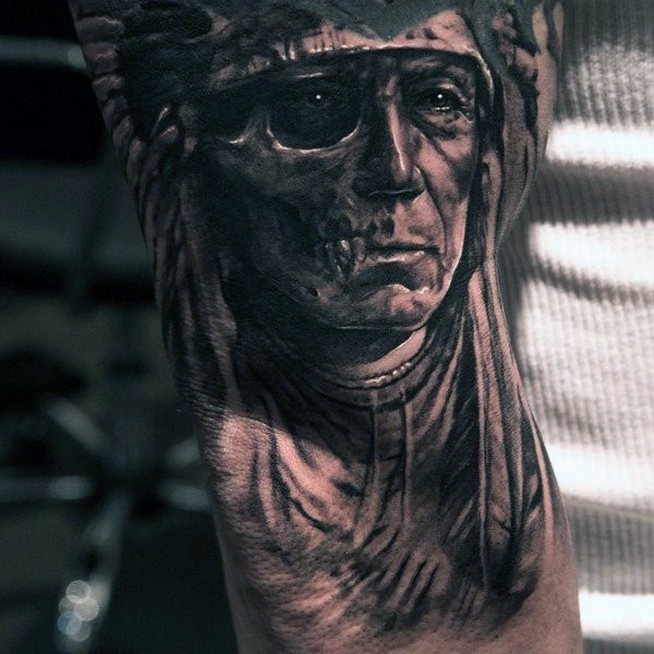 独特设计的彩色旧印度颅骨面部纹身图案